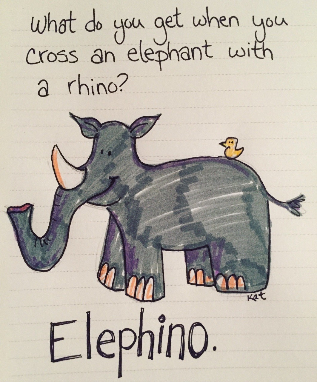 #27 What do you get when you cross an elephant with a rhinoceros? Eleph-ino! (Sounds like “Hell if I know!”)
