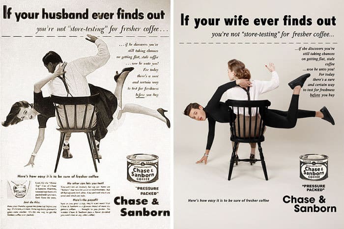 Long ago, we can still picture the image of the loyal woman slogging and working all day, doing the household chores, taking care of the children and cooking for the husband like a slave. And at that time, there was lots of sexist vintage ads which were released which portrayed women as being most inferior to men. Well, this is no longer the case nowadays as women have been able to become independent and are no longer considered as slaves. Inspired by them, photographer and video editor from Beirut, Lebanon, Eli Rezkallah created a series called “In A Parallel Universe” where he switched up the gender roles portrayed in those ads to reveal the absurdity of such stereotypes with humor.